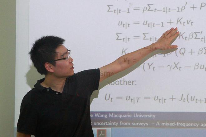 7月4日下午,教育部人文社会科学重点研究基地――bat365官网登录入口宏观经济研究中心(CMR) Seminar 2017年第八讲(总第210讲)在经济楼A201举行。澳大利亚麦考瑞大学经济系王哲教授报告了其最新研究“基于调查数据测定宏观不确定性:一种混合频次方法”(Measuring macroeconomic uncertainty from surveys - A mixed frequency approach )。中心副主任龚敏教授主持此次Seminar并为王哲教授颁发讲座纪念牌。