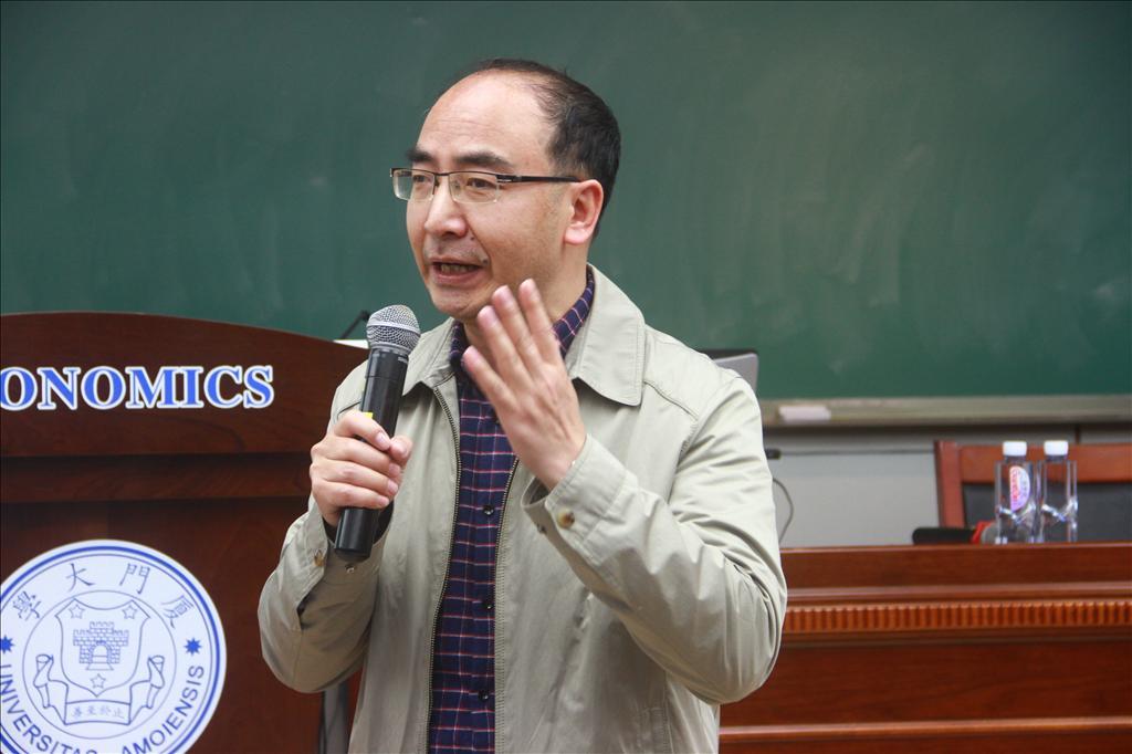 余长林教授展示《百位经济学家2018年中国宏观经济形势与政策问卷调查报告》的结果。本次问卷调查包括2018年世界经济形势、中国经济形势、中国宏观经济政策预测以及防控金融风险和高质量发展等四个部分的问题;接受调查的专家来自财政部、商务部、国家统计局、中国社科院、台湾中华经济研究院等机构以及北京大学、台湾大学、香港城市大学等高校;共收到128份有效问卷回复。余长林教授通过图表直观地向师生展现了问卷调查的结果,并将课题组与调查专家预测结果作了比较。本次问卷调查是宏观中心与新华社经济参考报联合举办的第十次调查。
