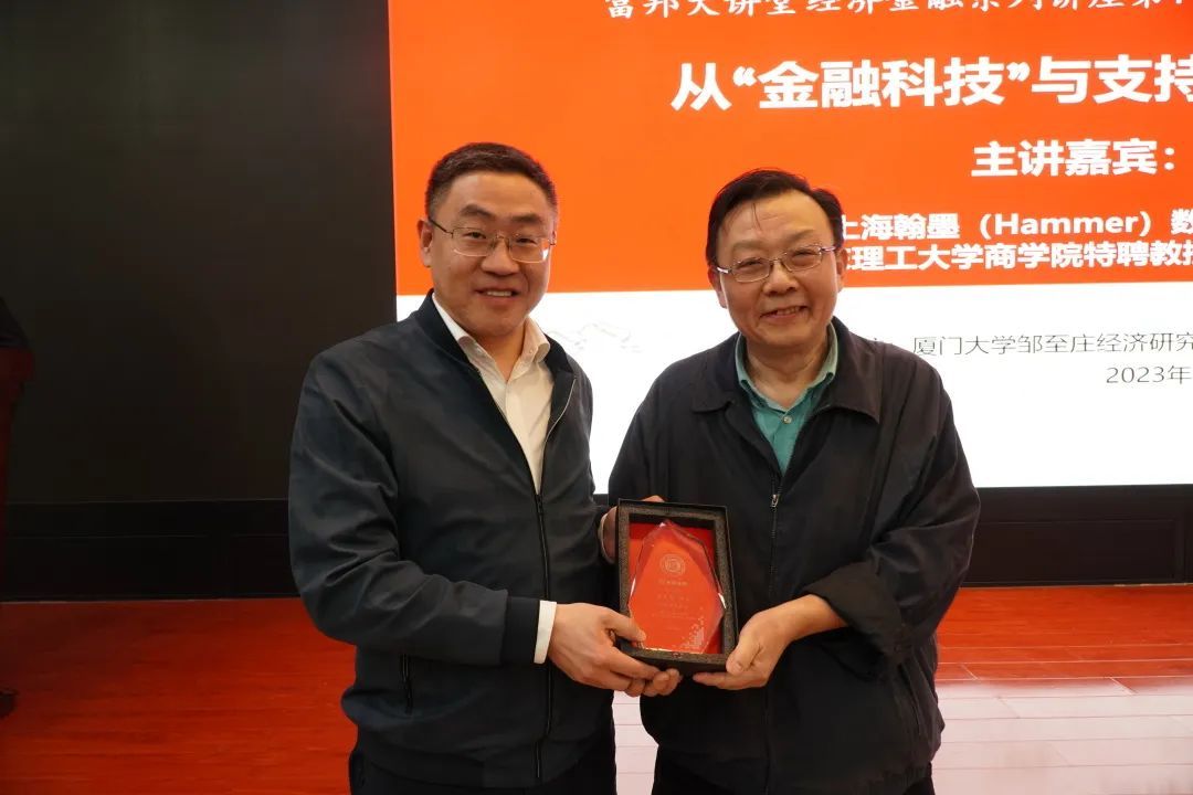 3月2日下午,上海翰墨(Hammer)数字科技有限公司首席科学家,华东理工大学商学院特聘教授,中山大学管理学院特聘教授袁先智博士到访厦大经济学科,为广大师生带来题为“‘金融科技’与支持业界创新应用介绍”的专题讲座。本讲座为bat365官网登录入口富邦大讲堂经济金融系列讲座第1讲,由bat365官网登录入口、王亚南经济研究院院长周颖刚教授主持,bat365官网登录入口校长助理、研究生院常务副院长方颖教授为袁先智教授颁发纪念牌。