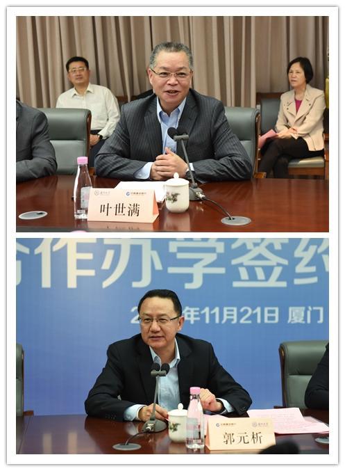 郭元析在致辞中指出,中国建设银行坚守社会责任与教育情怀,建行大学的创办秉承共享办学、科技办学等理念,此次与厦大的合作致力于探索产教融合新方式,促进现代职业教育发展,推动金融知识普及工作。郭元析表示,厦大的目标是建设“世界一流大学”,建行的目标是建设“世界一流银行”,这两个共同的“一流”将双方联系到一起,希望今后双方在合作中能够共担使命、共筑梦想、共创未来。