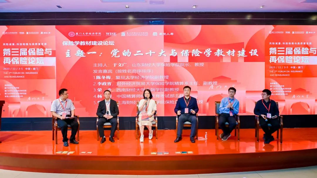 5日上午,保险学教材建设论坛如期举行,来自国内高校保险及相关学科的多名专家学者围绕“党的二十大与保险学教材建设”和“保险学教学设计与安排”两个主题展开研讨,旨在进一步提高保险学专业教学质量,提高人才培养质量。圆桌论坛由山东财经大学保险学院院长于文广、广东金融学院保险学院院长陈辉主持。