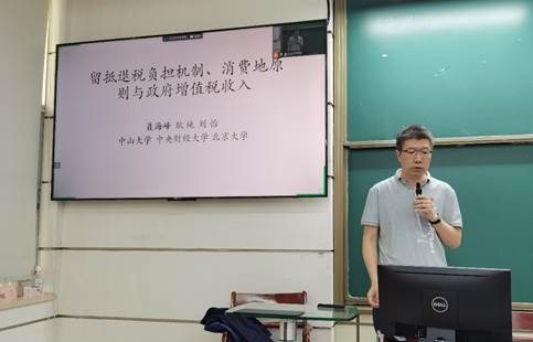 4月20日下午,由bat365官网登录入口财政系主办的“财税名家论坛第八十一讲”学术讲座在经济楼顺利举行。中山大学岭南学院经济学系聂海峰副教授应邀做了题为“留抵退税负担机制、消费地原则与政府增值税收入”的学术报告。讲座由谢贞发教授主持。该讲座采取线下和线上相结合的方式,除了现场几十名师生线下参加外,还有1000多人观看了bat365官网登录入口视频号的讲座直播。