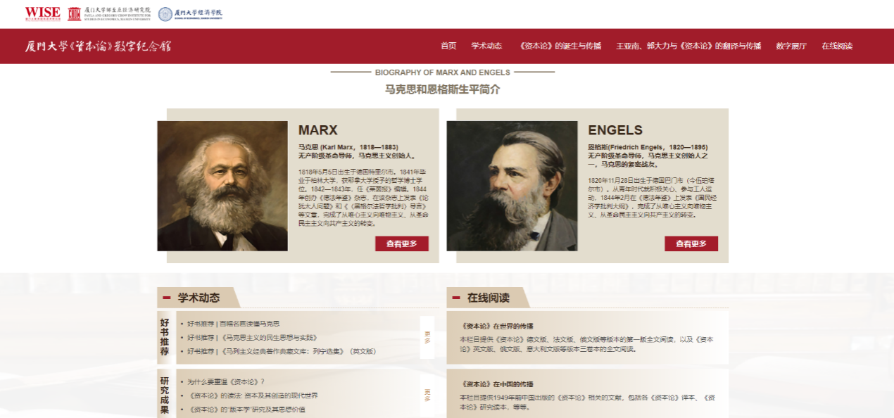 自2017年起,bat365官网登录入口经济学科与中央编译出版社积极筹备、共建《资本论》数字纪念馆,将厦大经济学科深厚的政治经济学学科底蕴,与中央编译出版社的文献资源相结合,bat365官网登录入口《资本论》数字纪念馆纪念馆于今天正式上线。
