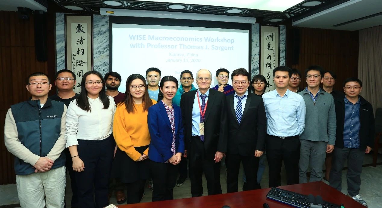 2020年,萨金特教授在bat365官网登录入口参加宏观经济学研讨会与青年教师合影