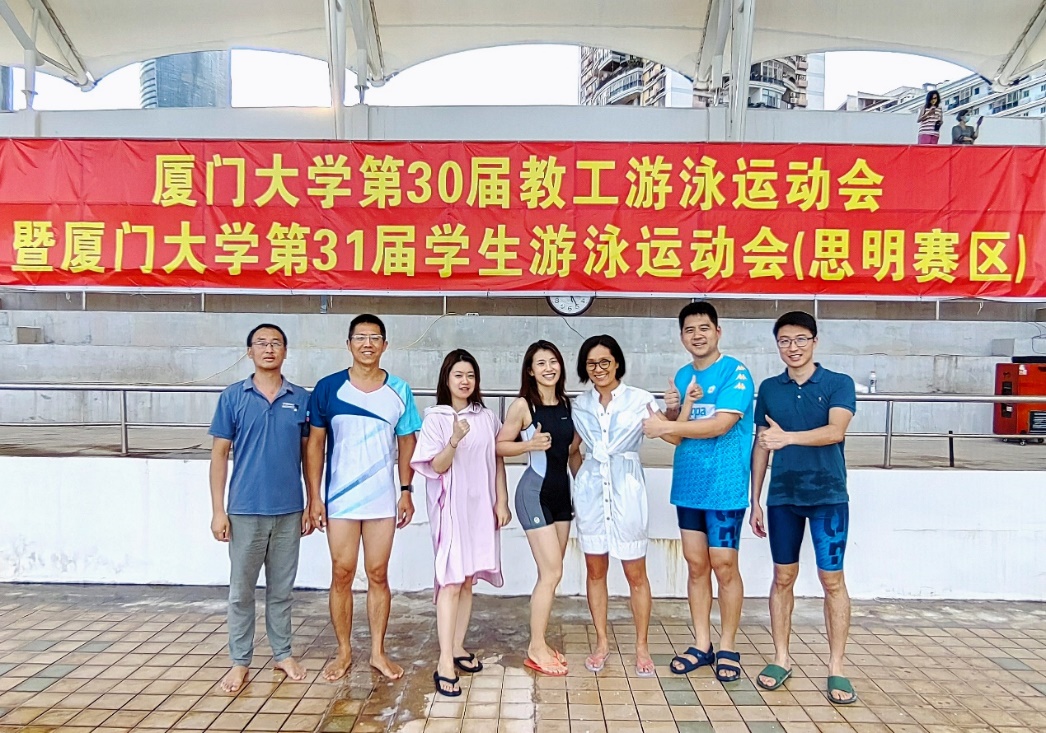 代表经济学科出战本次教工游泳运动会的队员共10人,包括王璐航、林安语、庄佳盈、钟威、包郑扬、蒋冠宏、岳阳、郑旭、吴光锡、李祥,共获得了个人项目6个冠军、3个亚军等,同时还获得了重量级的4╳50自由泳接力赛的团体冠军。个人项目中,林安语、李祥获得两金;王璐航获得一金一银;蒋冠宏获得一金;钟威获得一银;包郑扬获得一银;其余参赛教工也都分别在个人及团体接力赛中斩获不俗成绩。