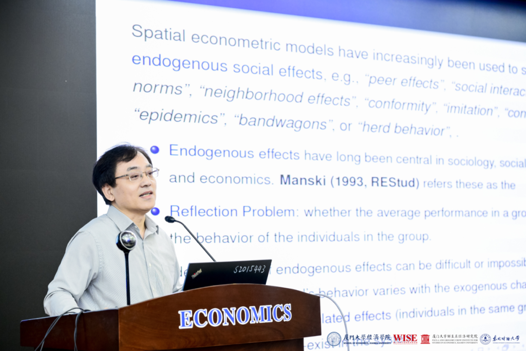 杨振林教授的研究提出了一类包含相关效应和时变空间网络矩阵的非平衡空间面板模型,并讨论了其中社会互动效应的识别与估计。他的研究提出了一种,能够在控制不可观测的个体效应的前提下,识别模型中网络层面的固定效应和可观测到的非时变效应的识别策略。他的研究还讨论了相关模型的矩估计方法和VC矩阵的估计方法。