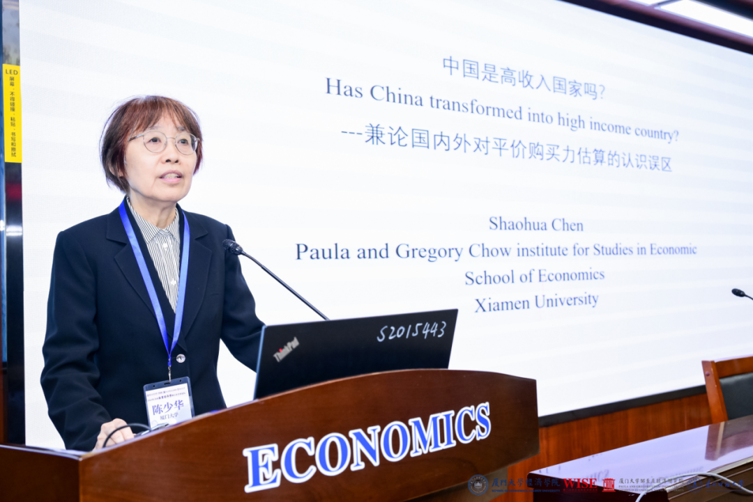 陈少华教授的报告介绍了全球视野下中国的收入问题。她指出,收入问题不能只看均值,中国的收入问题要分城市和农村来看,城乡之间收入差距显著。根据世界银行的高收入标准,中国现在还不是高收入国家。陈少华教授对中国何时能成为高收入国家的相关问题进行了论述,并就中等收入陷阱、中国经济总量的多边比较、平价购买力的核算,估计及欠缺等问题进行了详细介绍和讨论。