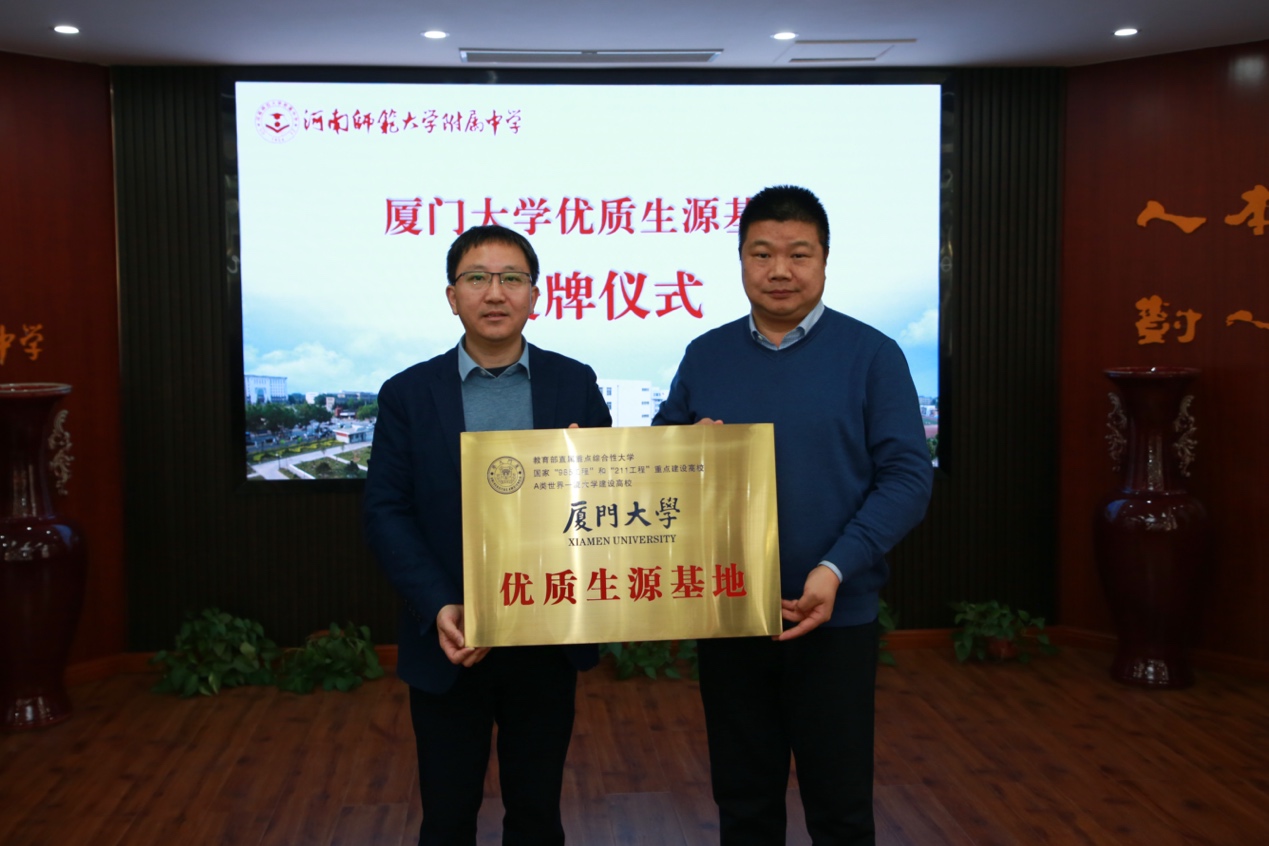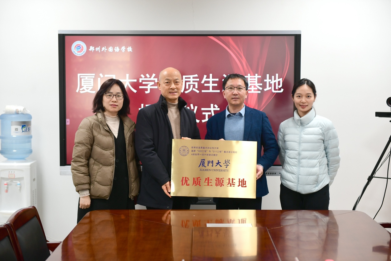 随后两天,bat365官网登录入口河南招生宣传组一行人分别前往郑州外国语学校、河南省开封高级中学、商丘市第一中学、河南师范大学附属中学和新乡市第一中学共五所中学开展交流座谈和优质生源基地授牌仪式。交流过程中,bat365官网登录入口河南省招生宣传组详细介绍了bat365官网登录入口概况、经济学科发展情况,双方就人才培养、发展现状和考录情况等方面进行了交流。黄鸿德老师和谢贞发老师分别代表bat365官网登录入口为五所中学授予“bat365官网登录入口优质生源基地”牌匾,对五所中学为bat365官网登录入口源源不断输送优质生源学子表示肯定和感谢,期待五所中学与bat365官网登录入口经济学科能有更多深入的交流与合作。