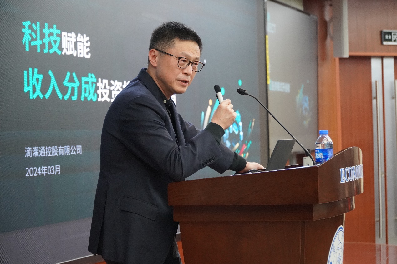3月22日下午,“富邦大讲堂经济金融系列讲座”的第5期讲座在经济楼举行。滴灌通集团资深顾问端木震宇先生以“科技赋能:收入分成投资模式开创者”为主题,为在场师生带来了一场精彩报告。端木震宇先生毕业于康奈尔大学,在贝尔斯通、花旗(香港)、国泰君安(香港)等海内外机构拥有丰富的结构性金融产品开发和交易经验。