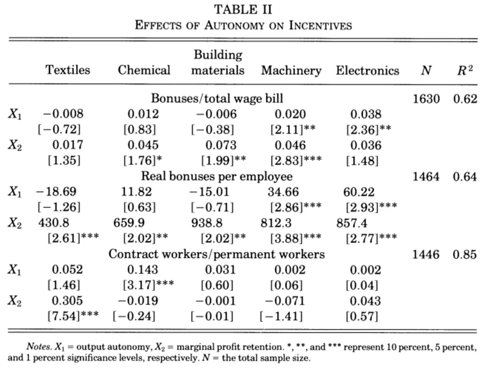案例研究显示,工业改革实际上取得了重大成功,企业自主性的提高导致企业层面行为发生了可衡量的变化。随着产出决策的自主性和边际利润保留率的提高,企业增加了奖金的使用,并雇佣了更多的定期合同工。工人激励的加强与更高的生产力相关。生产力的提高,提高了工人的收入(但不是管理层的收入),并导致企业增加了投资。