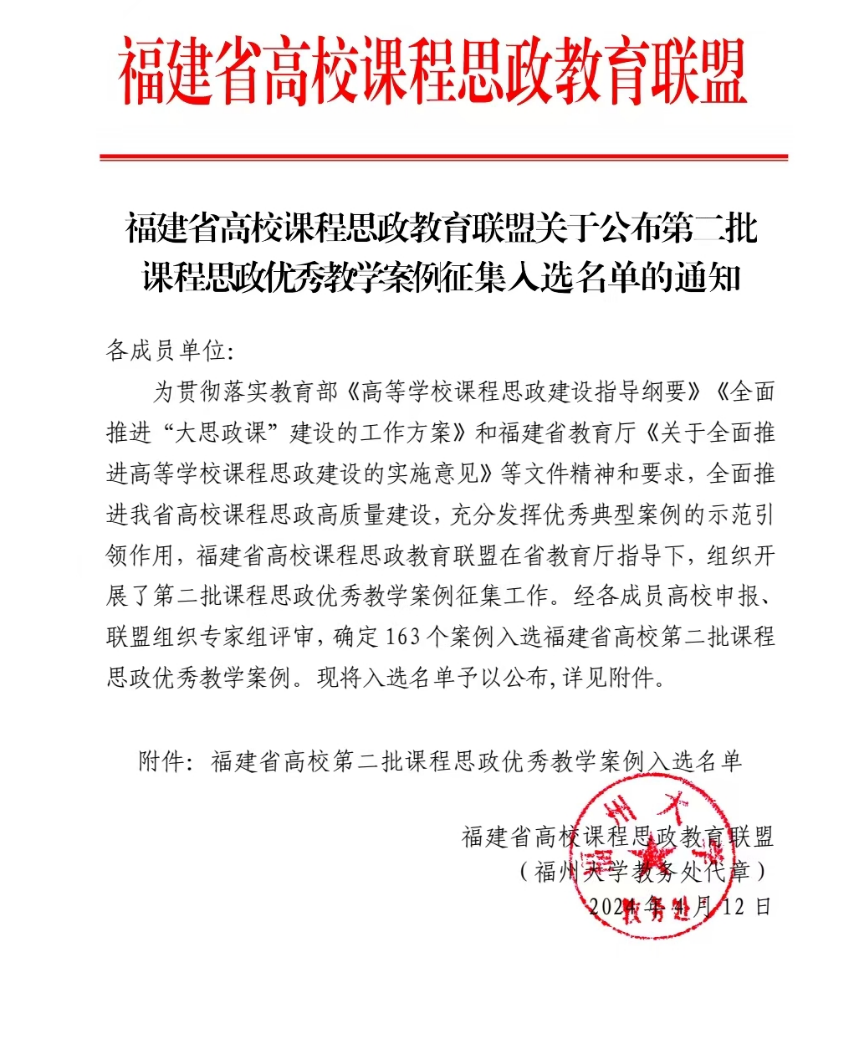近日,福建省高校课程思政教育联盟公布了第二批课程思政优秀教学案例入选名单,共有163个案例入选。其中,bat365官网登录入口经济学科洪永淼教授的《计量经济学因果推断:中国国有企业渐进式改革政策评估》课程思政教学案例入选。