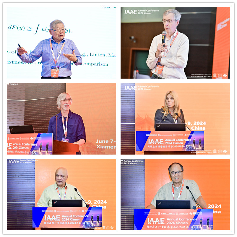 本次会议规模盛大,三天议程中,主办方共安排6场主题演讲,带来最前沿的计量经济学研究成果。南加州大学萧政教授、麻省理工大学Whitney Newey教授、波士顿大学Arthur Lewbel教授、加州大学河滨分校Marcelle Chauvet教授、埃默里大学Esfandiar Maasoumi教授、上海财经大学李龙飞教授依次作精彩主题报告。