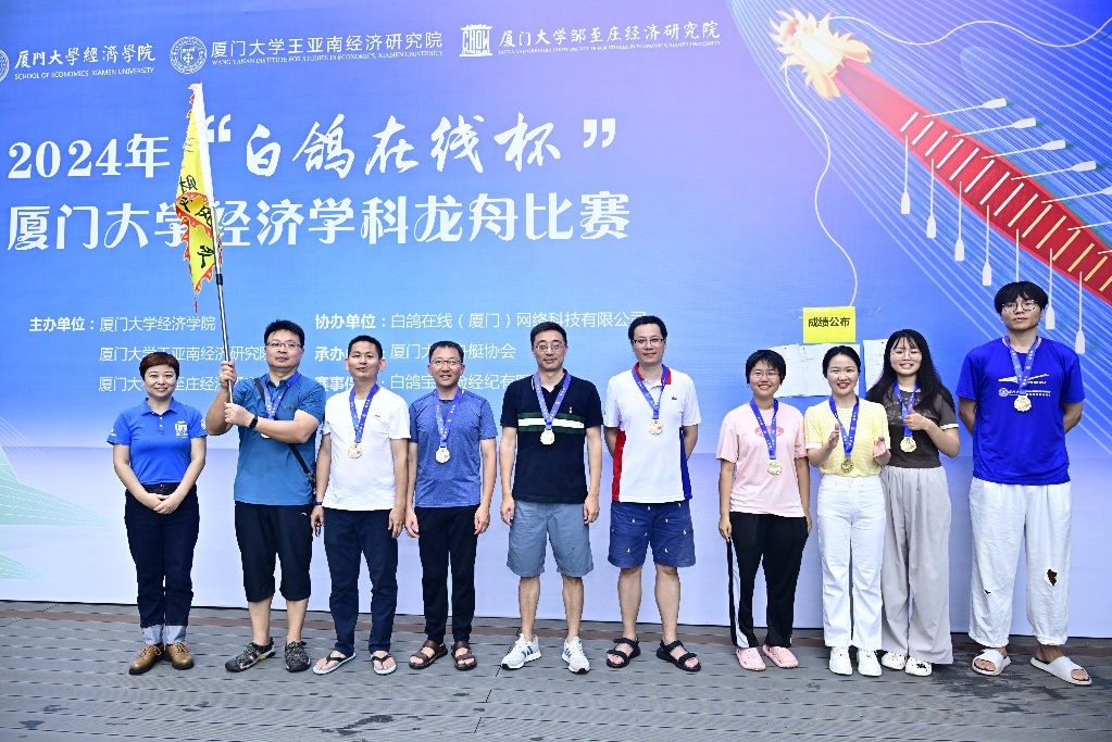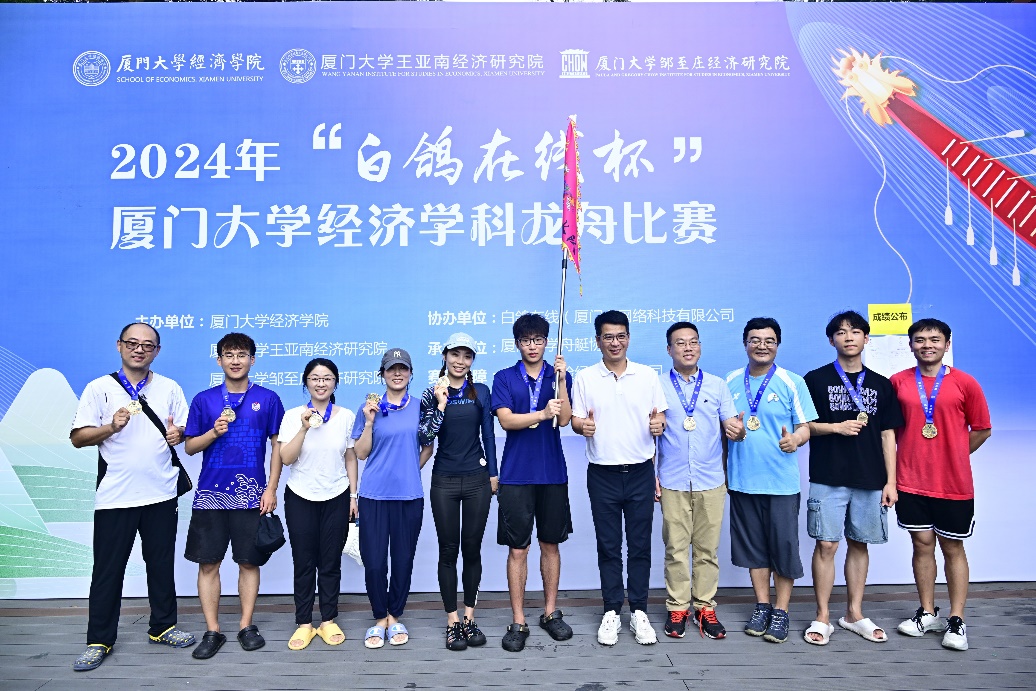 端午佳节期间,厦大经济学科主办国际应用计量经济学会(IAAE)2024年会,期间主办方准备的众多民俗体验活动让各国友人感受到了浓厚的中华传统节日氛围,本次经济学科龙舟比赛继IAAE2024年会后举办,不少参会嘉宾也来到现场观赛。本次龙舟赛是厦大经济学科首次在三院范围内组织师生参赛,不仅让参赛师生与观众们感受到了比赛的激情和乐趣,更是为了激发经济学科全体师生团结奋进、勇争上游、劈波斩浪,同舟共济的拼搏精神,为建设世界一流经济学科凝心聚力。