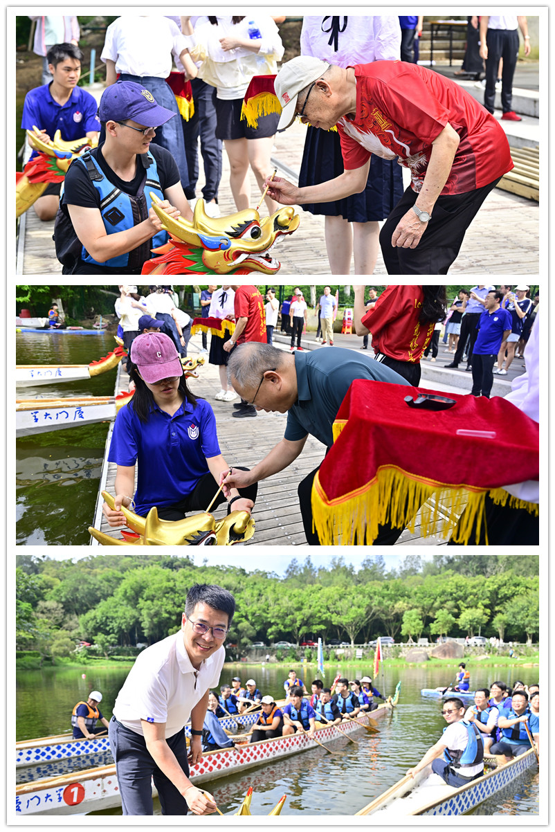 随后,美国南加州大学萧政教授,高忠华,涂锦波为龙舟点睛,随着bat365官网登录入口、王亚南经济研究院周颖刚院长的一声鸣笛,赛事正式开始。