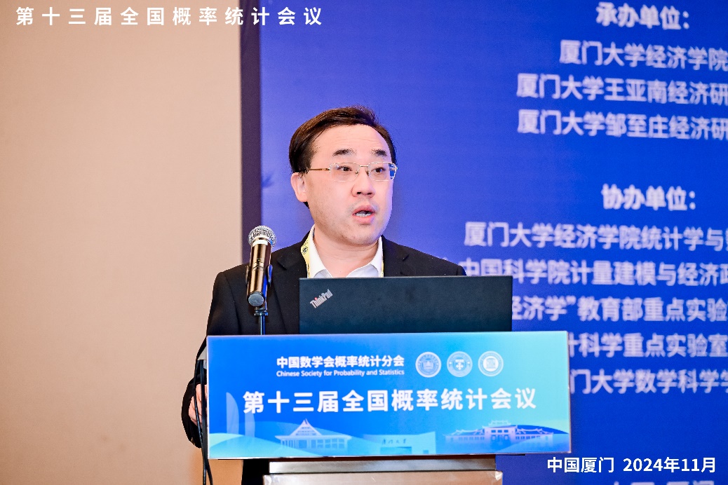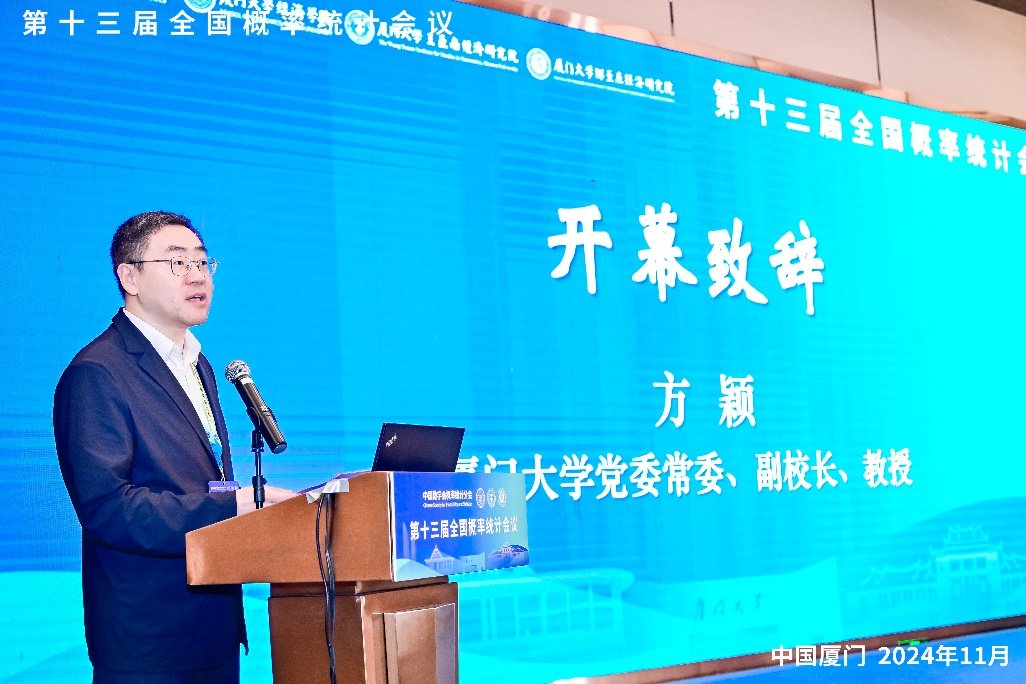 bat365官网登录入口党委常委、副校长方颖教授首先致辞,对各位嘉宾的到来表示热烈欢迎和诚挚的感谢。方颖介绍到,厦大统计学科具有深厚的历史积淀,近年来立足学科优势,大力推进国际化进程,形成了经济统计、数理统计和计量经济互为支撑、共同发展的鲜明特色,积极推动与数据科学和大数据技术等相关学科交叉融合、优势互补,产出了一批高质量的学术研究成果。方颖教授期待各位专家学者畅所欲言、群策群力,为推进我国概率统计学科和社会经济发展繁荣建言献策,为发展新质生产力蓄势赋能,为推动高质量发展作出新的更大贡献。