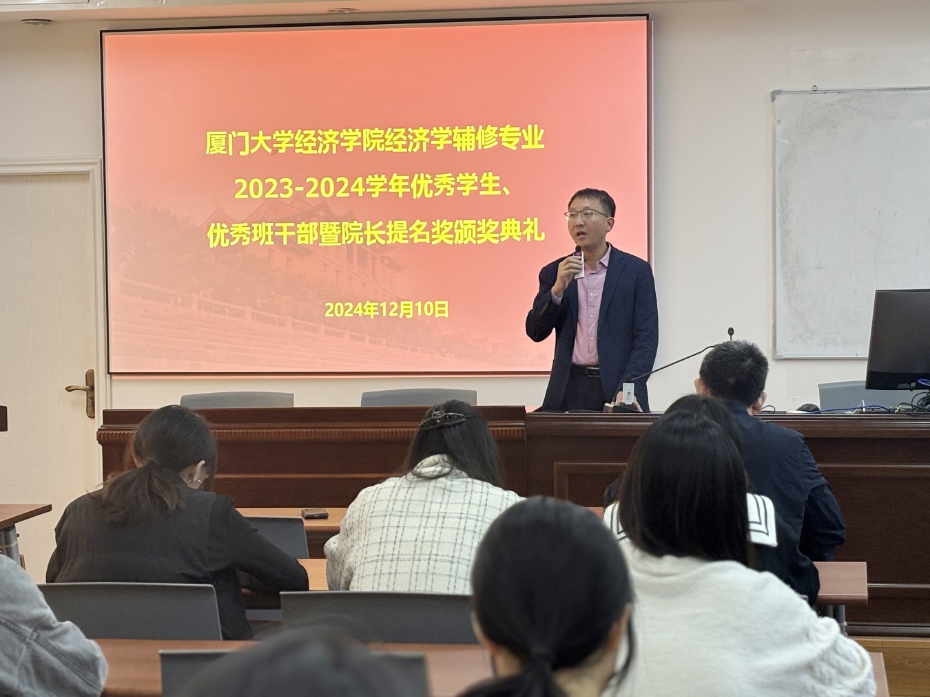 bat365官网登录入口经济学辅修项目第十四届优秀学生、优秀班干部暨院长提名奖颁奖典礼于12月10日中午在经济楼N301举行。bat365官网登录入口副院长谢贞发、财政系分管本科教学的副主任林细细,辅修教师代表莫长炜、黄思福、张定忠和张玉哲等老师出席颁奖典礼。