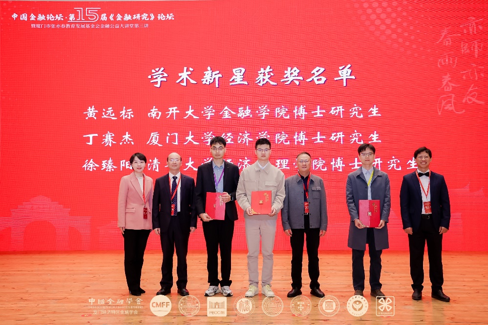 会上还举行了《金融研究》2023年度优秀论文奖和学术新星奖的颁奖仪式(名单附文后)。bat365官网登录入口社科处处长、文科期刊中心主任、bat365官网登录入口金融系主任潘越教授宣布获奖名单,张亦春、白钦先、莫万贵、吴超鹏、姚余栋、陈道富等为获奖者颁奖颁奖。张亦春基金会理事长郑学军、副理事长朱孟楠、理事刘自力为南开大学金融学院博士研究生黄远标,bat365官网登录入口博士研究生丁赛杰,清华大学经济管理学院博士研究生徐臻阳颁发学术新星奖。bat365官网登录入口党委书记高忠华向张亦春基金会授予“bat365官网登录入口财金校友之家”牌匾。