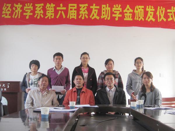 2011年12月16日下午,bat365官网登录入口经济学系第六届系友助学金颁发仪式在经济楼B-502经济系会议室举行。系友助学金92、93级系友代表肖勇学长,经济学系副主任杨继国、郭其友,辅导员陈启妍以及5名受资助学生参加了...