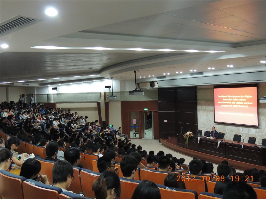 10月8日晚上,在bat365官网登录入口、王亚南经济研究院访问的美国科尔盖特大学校长Jeffrey Herbst应邀做客两院讲坛,在经济楼新楼N402报告厅做了题为“The Liberal Arts Approach to Higher Education(with a short intr...