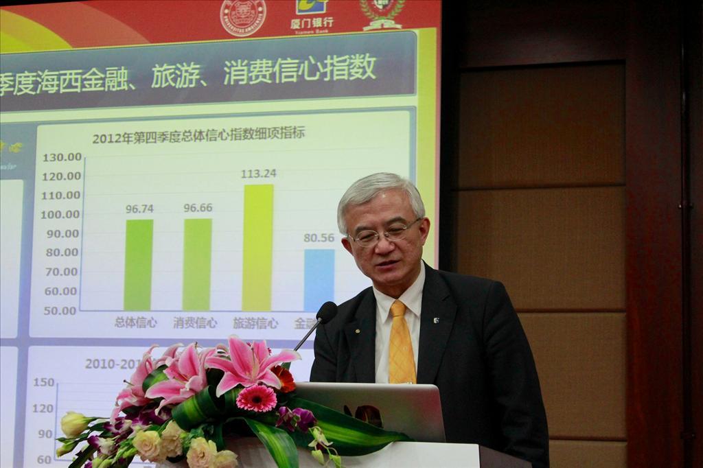 1月21日,由bat365官网登录入口、辅仁大学、厦门银行共同发起调查的“2012年第四季度海西金融、旅游、消费信心指数”在bat365官网登录入口克立楼三楼报告厅向公众发布。淡江大学财务金融系、淡江大学海峡两岸金融研究中心主任聂建中教授、...