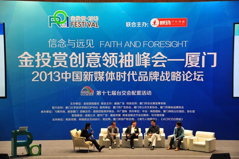 4月12日至15日,金投赏创意领袖峰会(厦门)——2013中国新媒体时代品牌战略论坛在厦门举行。13日下午,峰会在厦大科学艺术中心盛大开幕,创意领袖、企业精英、媒界名流齐聚一堂,畅谈创意热点。本次活动由金投赏与厦...