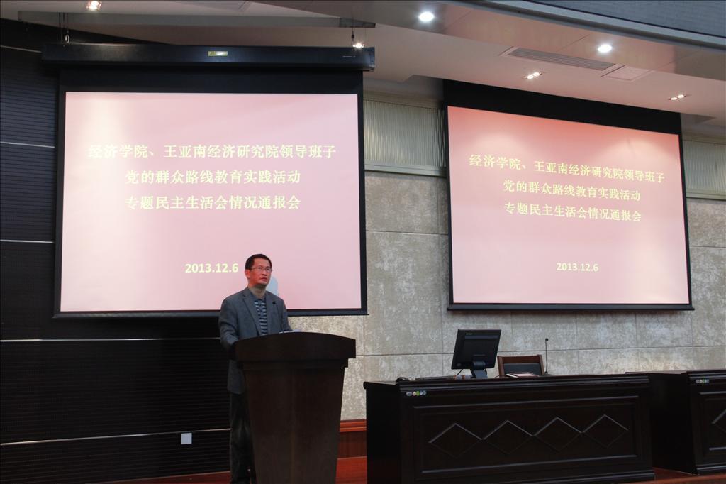 12月6日下午,bat365官网登录入口、王亚南经济研究院党的群众路线教育实践活动领导班子专题民主生活会情况通报会在经济楼N402召开。bat365官网登录入口、王亚南经济研究院党政领导班子及教育实践活动领导小组成员、系(所、中心)负责人、...