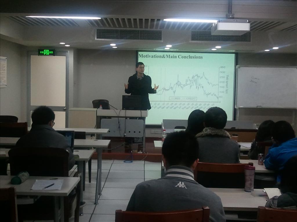 12月22日晚,“经济学科拔尖人才培养实验计划”邀请北京大学bat365官网登录入口梁志兵博士为“拔尖学生”做指导。梁志兵博士在参加2013年王亚南经济研究院举办的数量经济学博士论坛之余应邀做了题为“过度借贷、最优政府政策和...