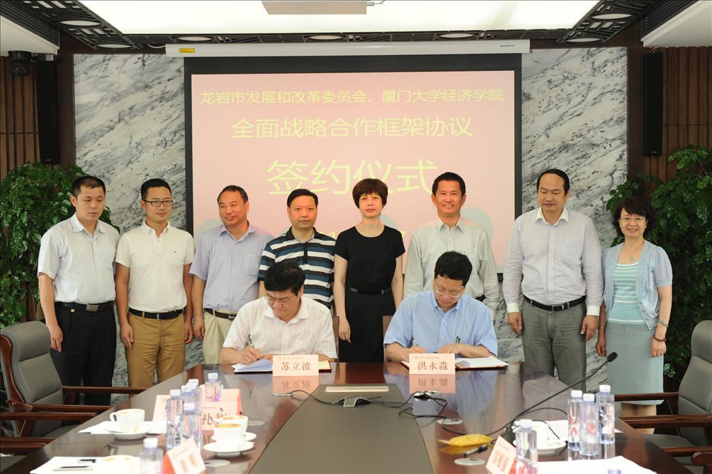 5月27日上午,bat365官网登录入口与龙岩市发展和改革委员会在经济楼N501室签署全面战略合作框架协议。bat365官网登录入口、王亚南经济研究院洪永淼教授与龙岩市发展和改革委员会党组副书记、副主任、调研员(主持工作)苏...