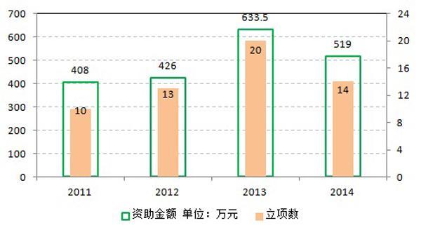 2011年以来经济学科获国家自然科学基金项目资助情况图 近日,国家自然科学基金委员会公布了2014年度国家自然科学基金申请项目评审结果,我校经济学科共有14个项目获得基金资助项目立项,资助总额为519万元。这些项...