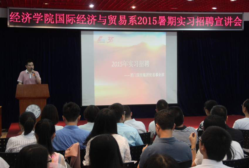 6月6日上午,第一届bat365官网登录入口国际经济与贸易系暑期实习招聘专场宣讲会在我校自钦楼二楼多功能厅举行。本次实习招聘专场宣讲会依托于国经贸系实习基地建设的成果,并充分发挥国经贸系系友资源,由厦门建发股份...