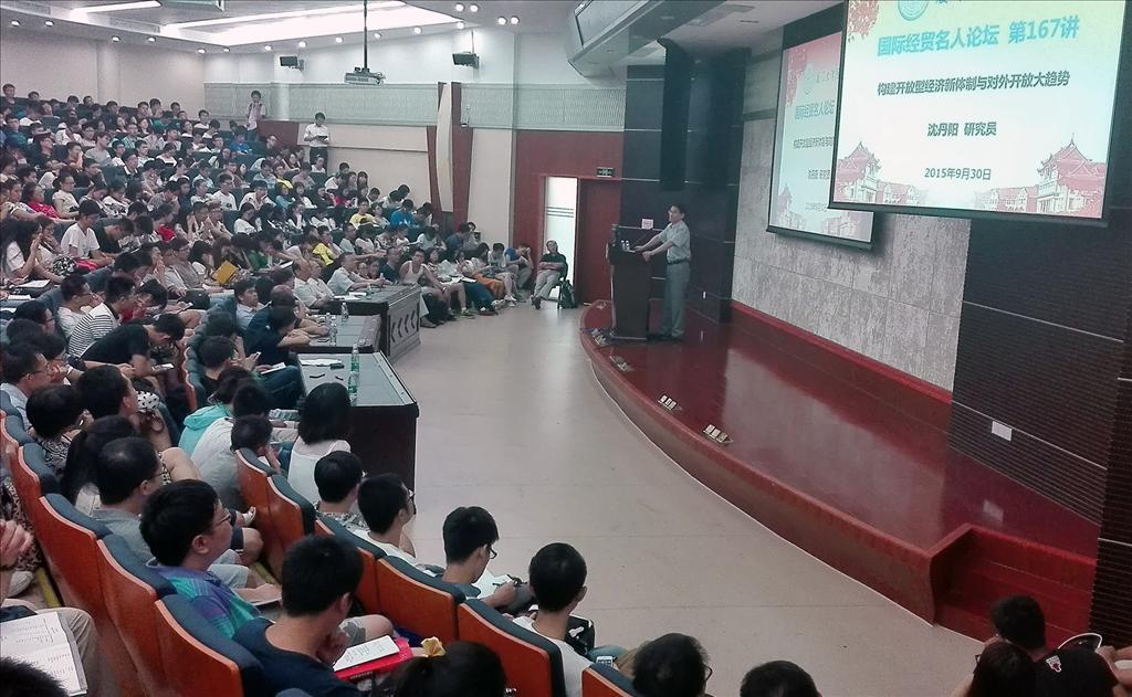 9月30日下午,商务部新闻发言人、政策研究室主任沈丹阳研究员应邀做客国际经贸名人论坛,在经济楼N402给两院师生带来了一场题为“构建开放型经济新体制与对外开放大趋势”的专题讲座。讲座由国际经济与贸易系主任彭水...