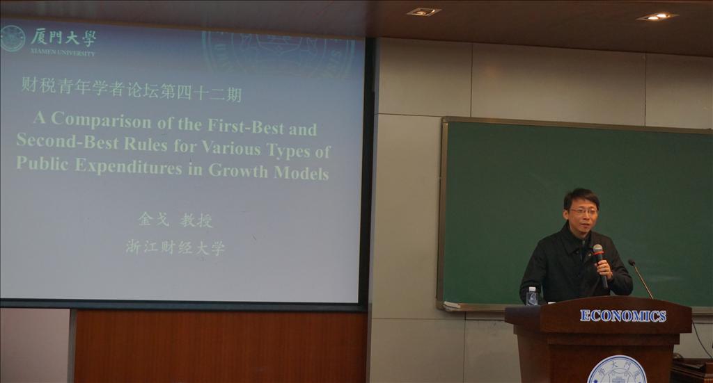 3月28日下午,由bat365官网登录入口财政系主办的“财税青年学者论坛第四十二期”学术讲座在经济N302顺利举行。浙江财经大学财政系金戈教授应邀做了题为“A Comparison of the First-Best and Second-Best Rules for Va...