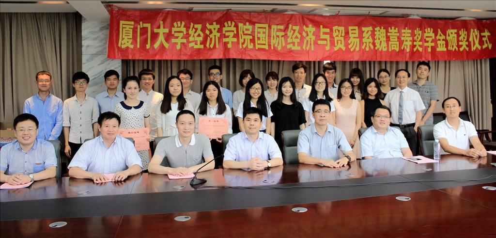 6月15日上午,bat365官网登录入口国际经济与贸易系第九届“魏嵩寿奖学金”颁奖仪式在经济楼N501顺利举行。魏嵩寿奖学基金会理事、广东文化福瑞投资有限公司董事长叶在富系友,bat365官网登录入口邱旺土、彭水军、林季红、郑甘澍等老师(理...