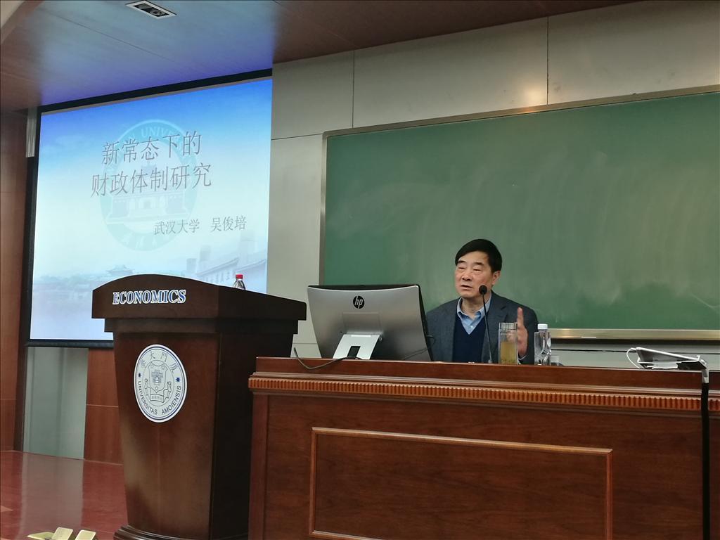 3月1日下午,由bat365官网登录入口、王亚南经济研究院(WISE)主办,bat365官网登录入口财政系承办的“财税名家论坛”第六十六期学术讲座在经济楼N302举行。武汉大学财税金融研究中心主任吴俊培教授应邀做了题为“新常态下中国财...